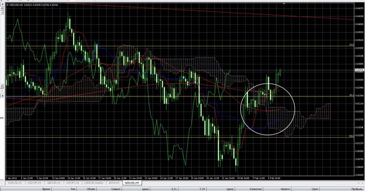 по Н1 и Н4 пара торгуется выше облака ишимоку