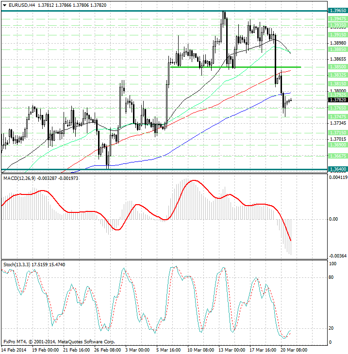 Доллар США продолжает испытывать спрос, благодаря довольно четкой позиции Джанет Йеллен. Несмотря на то, что многие ожидали, что она будет скорее в стане «голубей», чем «ястребов», новая глава ФРС дала понять, что сворачивание программы стимулирования будет идти прежними темпами, а первое повышение ставок произойдет спустя полгода, после того как QE3 будет полностью завершена. Тем временем, экономические данные из США продолжают преподносить небольшие, но приятные сюрпризы. Индекс активности от ФРБ Филадельфии в марте вырос до 9,0 от -6,3 в феврале, число заявок на пособия по безработице оказалось ниже прогнозного значения, а данные с рынка жилья совпали с ожиданиями.