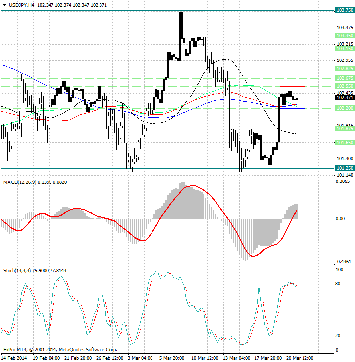 Обратив внимание на 4х часовой график можно заметить, что уже второй день подряд торги не выходят за рамки узкого ценового диапазона 102.55 - 102.20. Это в свою очередь сигнал о том, что на рынке форекс в данной валютной паре возникла краткосрочная неопределенность...