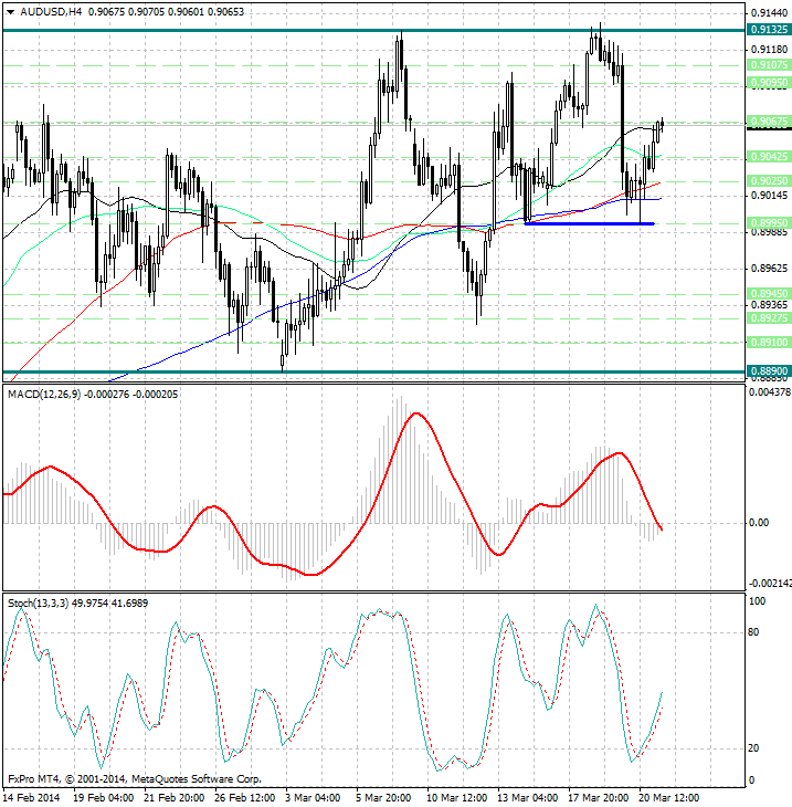 Курс валюты закрепился выше скользящих средних с периодами 34, 55, 89 и 144, которые теперь являются рядом уровней поддержки 0.90625, 0.9045, 0.9025 и 0.90125.