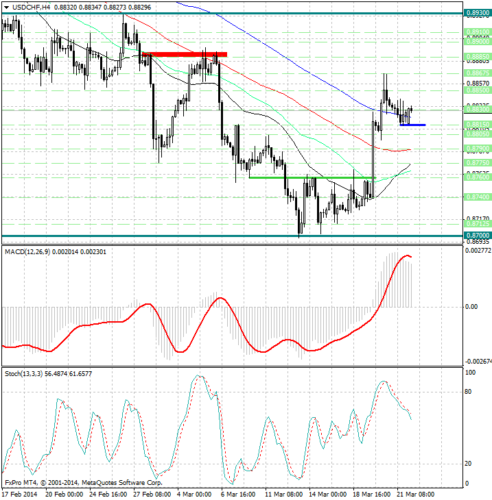 Обратив внимание на 4х часовой график можно заметить, что:курс валюты нашел ощутимую поддержку возле уровня 0.8815,с американской сессии прошлой пятницы в данной валютной паре проявляются слабо выраженные бычьи настроения...