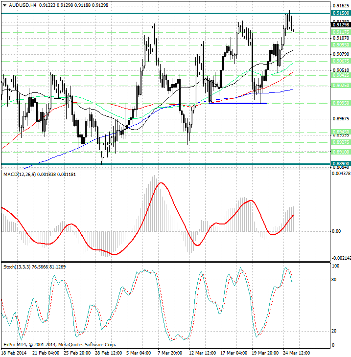 1. Пробой уровня сопротивления 0.9150 и рост австралийского доллара (AUD) к уровням 0.9200/10 и 0.9270.