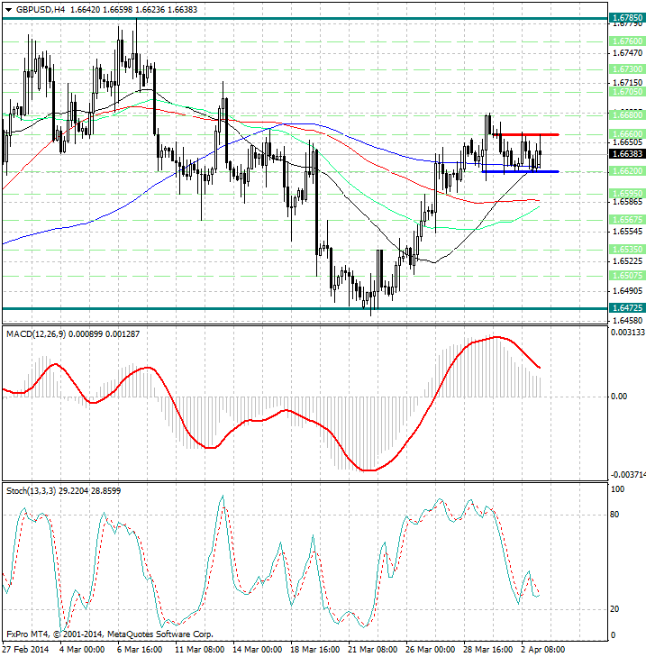 Обратив внимание на 4х часовой график можно заметить, что уже третий день подряд торги не выходят за рамки узкого ценового диапазона 1.6660 - 1.6620. Это в свою очередь сигнал о том, что на рынке форекс в данной валютной паре сохраняется краткосрочная неопределенность...