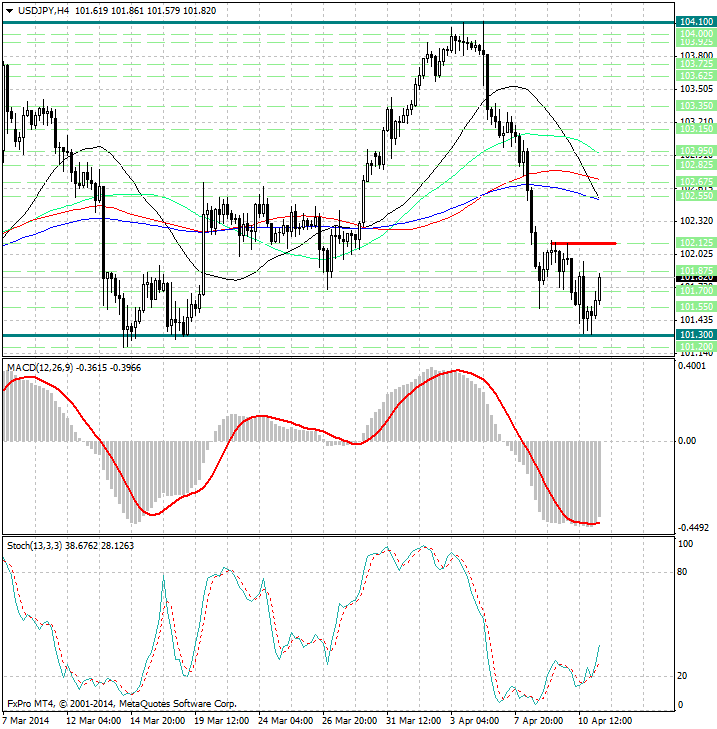 Курс валюты по-прежнему расположен значительно ниже скользящих средних с периодами 144, 34, 89 и 55, которые являются рядом уровней сопротивления 102.50/525, 102.70 и 102.95.