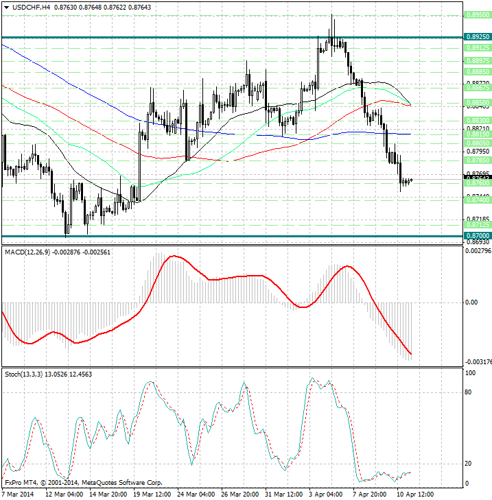 2. Пробой уровня поддержки 0.8750 и снижение USD/CHF к локальному min 0.8700.