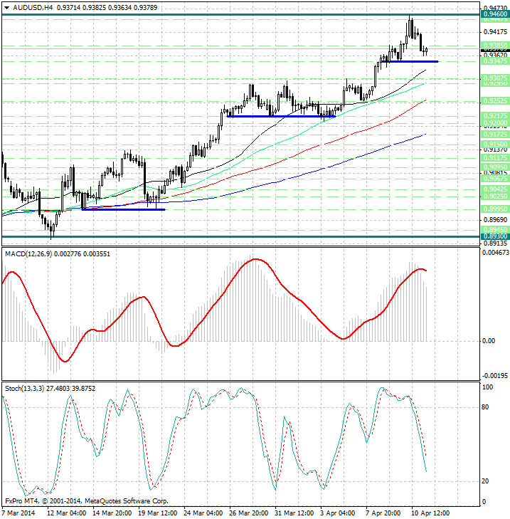 Обратив внимание на 4х часовой график можно заметить, что:курс валюты встретил существенное сопротивление возле уровня 0.9460 (область 6ти месячных max),со второй половины дня четверга сохраняется ощутимое давление на австралийский доллар...