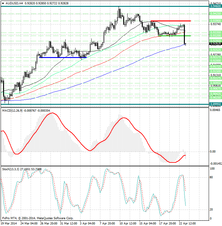 Обратив внимание на 4х часовой график можно заметить, что сегодня на торгах в Азии медведи нанесли сильный удар по австралийскому доллару. С точки зрения фундаментального анализа, причиной агрессивных продаж австралийской валюты стали данные по инфляции в Австралии, которые вышли слабее ожиданий экономистов...