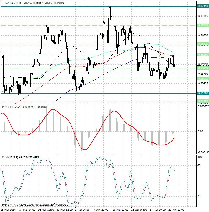 Несмотря на один четкий сигнал, мы ожидаем, что давление на новозеландский доллар (NZD) сохранится и может усилиться, если будет пробит уровень поддержки 0.85575, который может открыть путь к локальному min 0.8500 и 0.8450.
