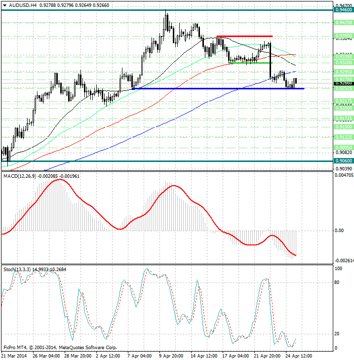Курс валюты закрепился ниже скользящих средних с периодами 144, 34, 55 и 89, которые теперь являются рядом уровней сопротивления 0.92975, 0.93125, 0.9335 и 0.93425.