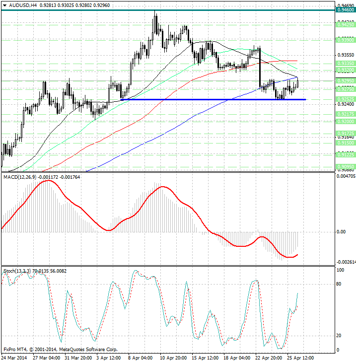 Курс валюты по-прежнему расположен ниже скользящих средних с периодами 144, 34, 55 и 89, которые являются рядом уровней сопротивления 0.93025/05, 0.93225 и 0.93425.