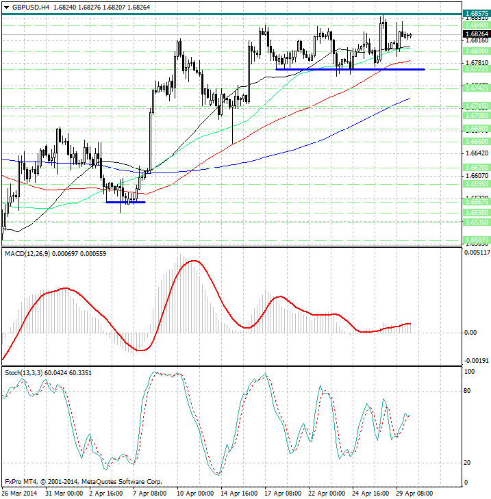 Сегодня в 11:55 мск Германия опубликуют данные по рынку труда. В 13:00 мск выйдут данные по потребительским ценам в Еврозоне. Экономисты в апреле ожидают ускорение инфляции до 0,8% против 0,5% месяцем ранее. Если показатели окажутся ниже ожиданий – евро/доллар обновит минимум, а ЕЦБ придется 8 мая применить нетрадиционные меры для борьбы с дефляцией (негативный фактор для евро).