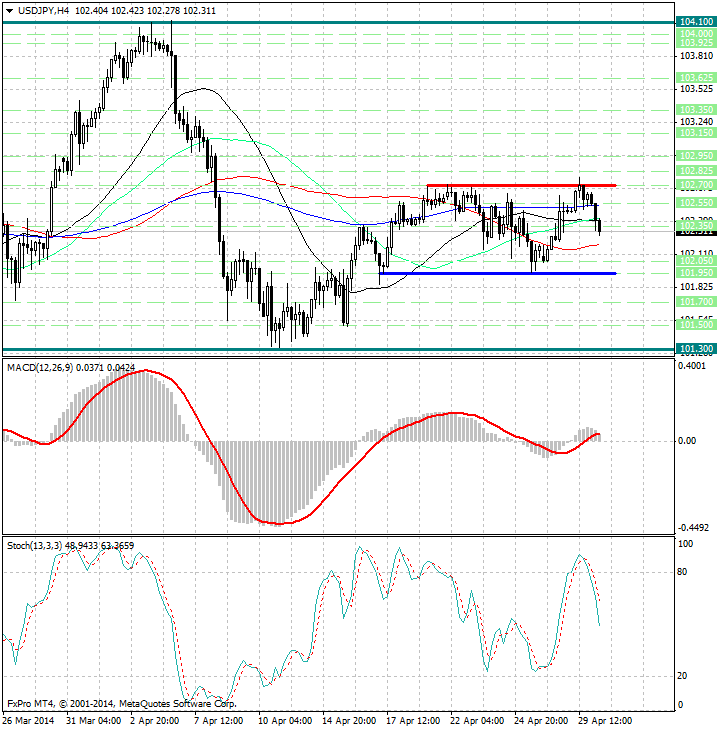 Курс валюты зажат между скользящих средних с периодами 34, 55 и 144 (уровни сопротивления 102.40/425 и 102.55) с одной стороны и средней с периодом 89 (уровень поддержки 102.20) с другой.