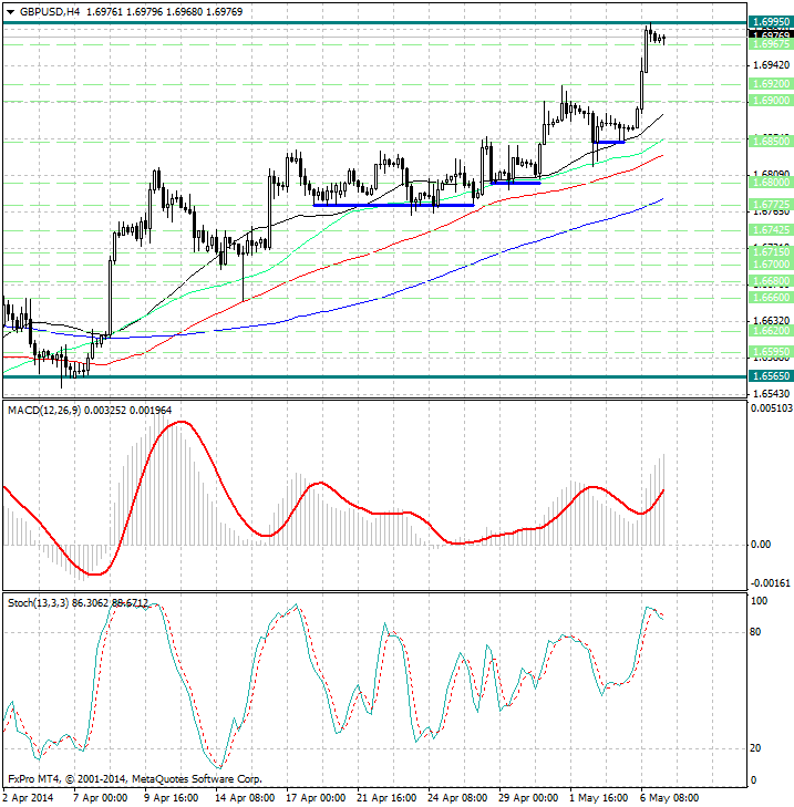 Начнем с того, что наш вчерашний форекс прогноз подтвердился - пробой сильного уровня сопротивления 1.6900 привел к усилению бычьих настроений и отработка наших целей 1.6950 и 1.7000 завершилась в ходе европейской сессии. С точки зрения фундаментального анализа, британский фунт (GBP) получил значительную поддержку после публикации новости о том, что индекс PMI для сферы услуг Великобритании оказался на самом высоком уровне за последние четыре месяца...