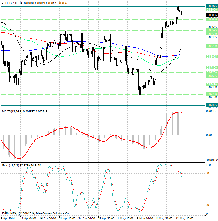 Курс валюты по-прежнему расположен значительно выше скользящих средних с периодами 34, 89, 144 и 55, которые направлены вверх и указывают на сохраняющиеся бычьи настроения (в среднесрочной перспективе), а также являются рядом уровней поддержки 0.8825 и 0.8810/075.