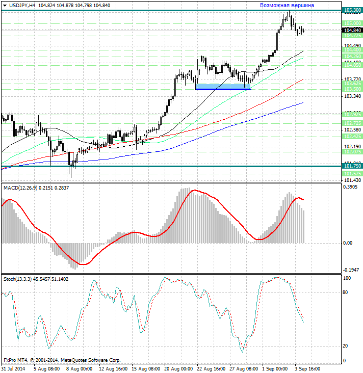 Обратив внимание на 4х часовой график можно заметить, что:возможная вершина найдена (105.30 - область 8-месячных max),с европейской сессии среды продолжается нисходящее коррекционное движение...