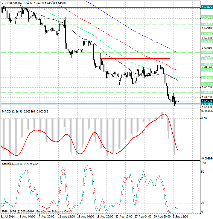 2. Пробой уровня поддержки 1.6445 и снижение британского фунта (GBP) к уровням 1.6370 и 1.6310/00.