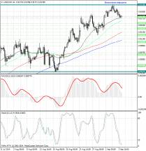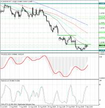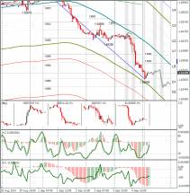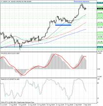 Курс валюты по-прежнему расположен существенно выше скользящих средних с периодами 34, 55, 89 и 144, которые направлены вверх и указывают на сохраняющиеся бычьи настроения (в среднесрочной перспективе), а также являются рядом уровней поддержки 0.9175, 0.9165, 0.9135 и 0.9110.