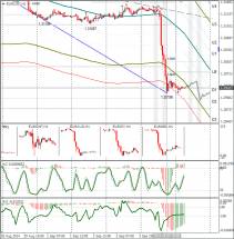 Курс валюты по-прежнему расположен существенно ниже скользящих средних с периодами 34, 55, 89 и 144, которые направлены вниз и указывают на сохраняющиеся медвежьи настроения (в среднесрочной перспективе), а также являются рядом уровней сопротивления 1.31525, 1.31725, 1.3235 и 1.3290.