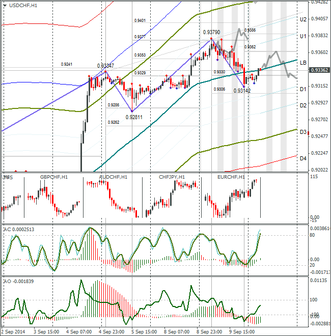 Для продолжения роста, доллар крутовато завалился против швейцарского франка. Нежелательно было пробивать линию lb. Сейчас чаша весов склонилась на сторону продавцов. По основному сценарию при пустом календаре от USDCHF ожидаю рост до 0,9362 и потом снижение в район 0,9330. Походу вчера началась коррекция и продлится не менее трёх дней.