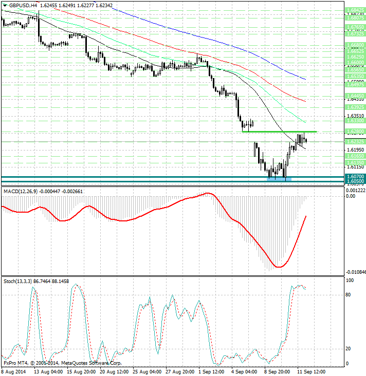 Пара GBP/USD окажется на стыке экономических отчетов и референдума по независимости Шотландии, который состоится 18 сентября. Его тоги могут оказать на пару даже большее влияние, чем публикация данных по индексу потребительских цен и протокола сентябрьского заседания МРС. Даже если в Комитете увеличилось число сторонников ужесточения (что маловероятно), рост фунта может быть очень сдержанным. Куда более активное укрепление пара сможет развить, если Шотландия проголосует за единство. В этом случае GBP/USD может вырасти к уровню 1,6380 и, далее, 1,6460. В противном случае, не исключено снижение к 1,60.