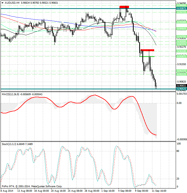 Начнем с того, что наш вчерашний форекс прогноз подтвердился - давление на австралийский доллар (AUD) сохранилось и усилилось после пробоя уровня поддержки 0.91125, и наша первая цель 0.9060/50 была достигнута несколько часов назад...