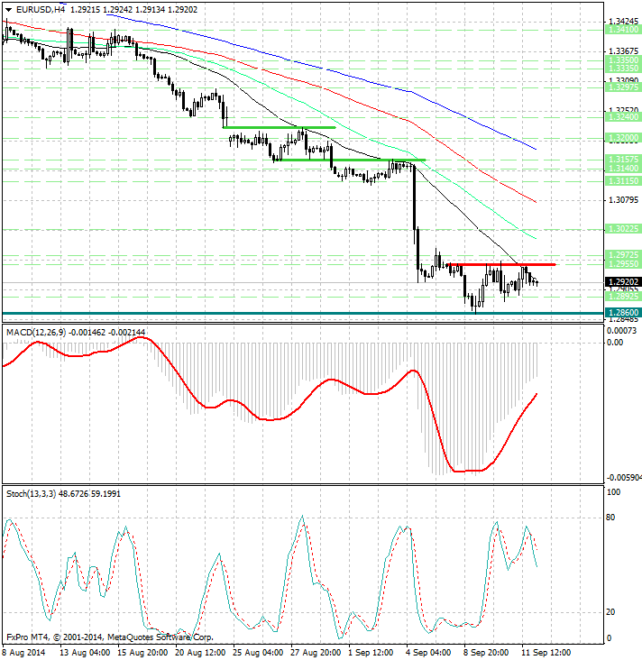 Обратив внимание на 4х часовой график можно заметить, что уже длительный период времени торги не выходят за рамки ценового диапазона 1.2955 - 1.2860 (область 15-месячных min). Это в свою очередь сигнал о том, что на рынке форекс в данной валютной паре сохраняется краткосрочная неопределенность...