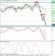 Курс валюты по-прежнему расположен значительно ниже скользящих средних с периодами 55, 89 и 144, которые направлены вниз и указывают на сохраняющиеся медвежьи настроения (в среднесрочной перспективе), а также являются рядом уровней сопротивления 1.3005, 1.3075 и 1.31775, и в данный момент практически слился со средней с периодом 34.