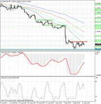 Курс валюты по-прежнему расположен значительно ниже скользящих средних с периодами 34, 55, 89 и 144, которые направлены вниз и указывают на сохраняющиеся медвежьи настроения (в среднесрочной перспективе), а также являются рядом уровней сопротивления 0.9235, 0.92675, 0.9290 и 0.92925.