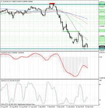RSI движется под уровнем 50 вблизи зоны перепроданности.