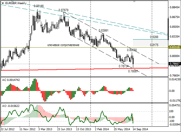 На фоне выступления главы ФРС США Джанет Йеллен и шотландского референдума курс EUR/GBP снизился до 0,7808. Евро остаётся слабым по отношению к британскому фунту, но вот именно сейчас необходимо следить за этим кроссом, потому что он может неожиданно для всех развернуться вверх после восьмидневного падения.