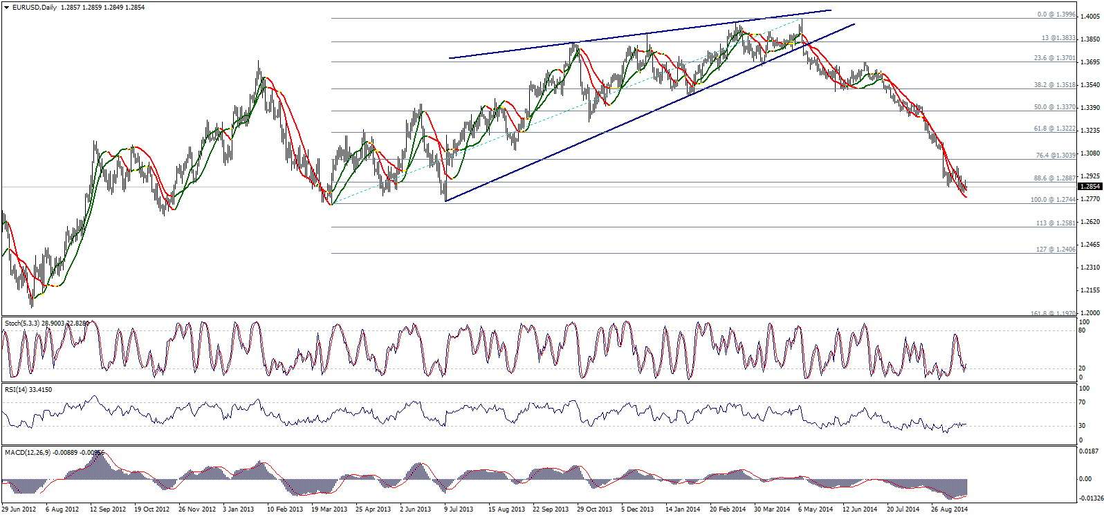 Вчера пара не смогла стабилизироваться выше области сопротивления 1,2885/90 (88,6% коррекции Фибоначчи), и исходя из правил Фибоначчи, стабильность ниже данной области означает негативное давление на пару. Соответственно, мы продолжаем придерживаться нашего медвежьего сценария.