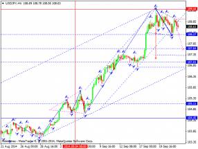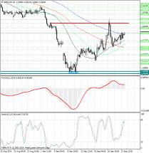 Здесь от 19 сентября формируется потенциал для нисходящего движения в коррекции. Продолжения движения к низу, ожидаем после пробоя 177.45, в данном случае цель – 176.70, возле этого уровня консолидация цены. Проход ценой шумового коридора 176.70 – 176.29 должен сопровождаться выраженным движением к низу, здесь потенциальная цель – 175.11. Краткосрочное восходящее движение, возможно в коридоре 178.69 – 179.41, пробой последнего значения будет располагать к развитию восходящего движения, здесь цель – 180.51. Потенциальным значением для верха, считаем уровень 181.77.