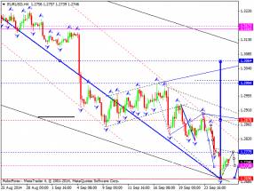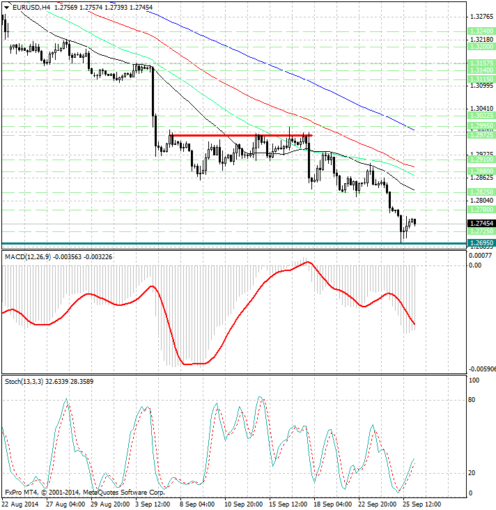 Начнем с того, что наш вчерашний форекс прогноз подтвердился - снижение евро (EUR) продолжилось и наша первая цель 1.2710/00 была достигнута в ходе европейской сессии.