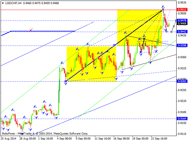 2. Пробой уровня поддержки 0.9460 и коррекция к уровням 0.94175 и 0.9370.