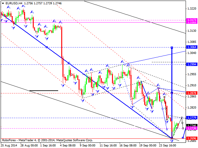 Валютная пара евро доллар растянула очередную структуру снижения. Рынок вчера начал формировать импульс роста. На сегодня рассматриваем отработку уровня 1.2780. Далее - снижение к уровню 1.2736. После формирования такого паттерна рассмотрим его на возможность разворотной модели и начала волны роста. Первой целью рассматриваем рост на отработку уровня 1.3388.