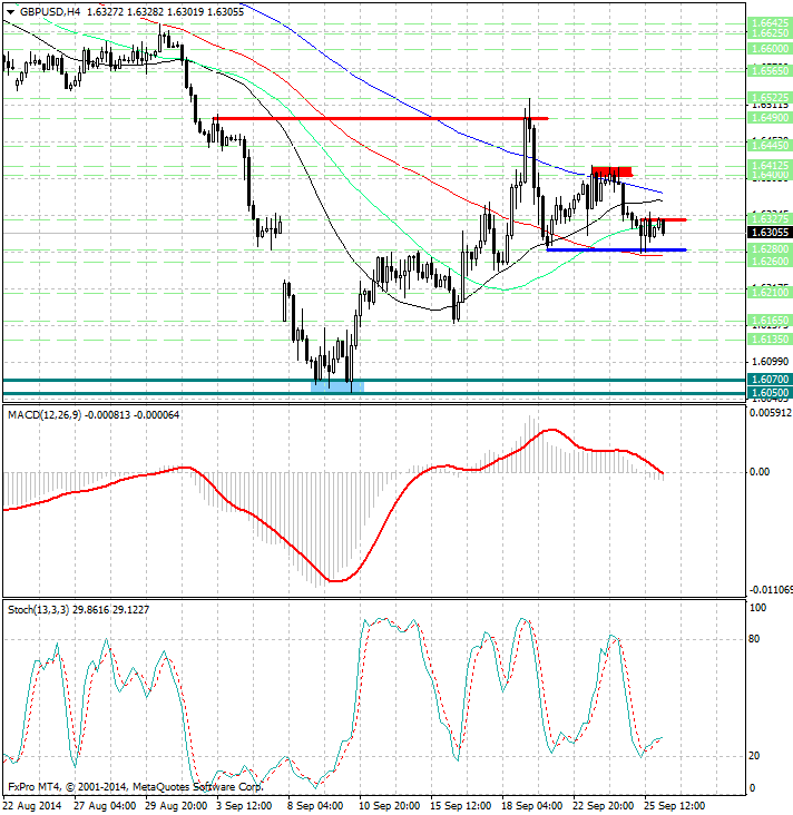 с одной стороны курс валюты встречает существенное сопротивление возле уровня 1.63275, с другой - находит ощутимую поддержку возле уровня 1.6280...