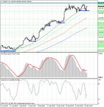 Курс валюты зажат между скользящих средних с периодами 55, 34 и 144 (ряд уровней сопротивления 1.6320, 1.63575 и 1.6370) с одной стороны и средней с периодом 89 (уровень поддержки 1.6270) с другой.