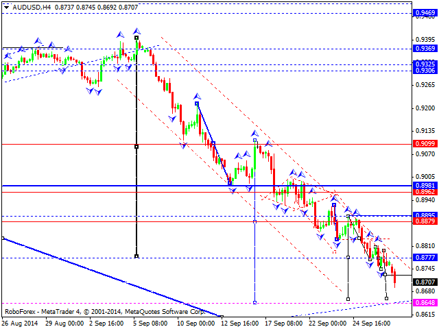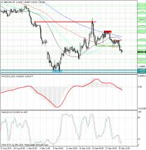 Курс валюты по-прежнему расположен существенно ниже скользящих средних с периодами 34, 55, 89 и 144, которые направлены вниз и указывают на сохраняющиеся медвежьи настроения (в среднесрочной перспективе), а также являются рядом уровней сопротивления 1.2795, 1.28425, 1.2875 и 1.2965.