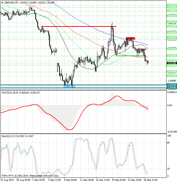 Обратив внимание на 4х часовой график можно заметить, что на торгах в прошлую пятницу пробой уровня поддержки 1.6280 привел к усилению медвежьих настроений и наша первая цель 1.6210 была практически достигнута уже сегодня в самом начале азиатской сессии...