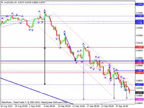 Обратив внимание на 4х часовой график можно заметить, что примерно с середины азиатской сессии прошлой пятницы в данной валютной паре доминируют медвежьи настроения...