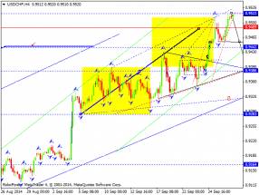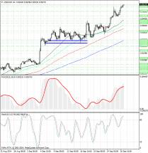 Гистограмма MACD по-прежнему расположена в положительной зоне и выше своей сигнальной линии, продолжает плавно повышаться и тем самым подает сигнал на покупку USD/CHF.