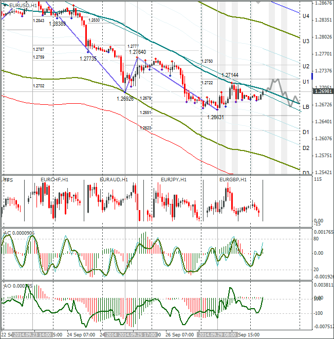 В понедельник единая валюта откатилась к линии lb и вернулась к уровню 1,2685. Евро останется под давлением до четверга, поскольку участники рынка ожидают от ЕЦБ по итогам заседания новых стимулирующих мер. Рискну предположить, что евро/доллар вернётся к 1,2663, а может даже и обновит минимум. Допускаю рост пары до 1,2714, выше никак нельзя. Рост до 1,2748 на время ослабит давление на единую валюту и тогда флэт затянется до четверга.