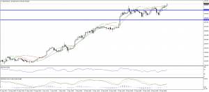 Гистограмма MACD по-прежнему расположена в положительной зоне и выше своей сигнальной линии, продолжает плавно повышаться и тем самым подает сигнал на покупку USD/JPY.