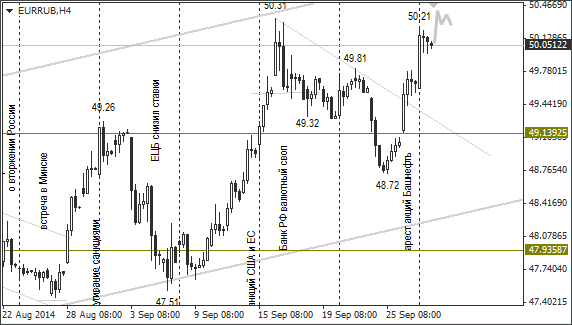 Центральный банк России с 30 сентября повысил официальный курс доллара США к рублю на 66,23 коп., до 39,3866 руб. Официальный курс евро к рублю был установлен на отметке 49,954 руб., что выше предыдущего дня на 61,54 коп. Стоимость бивалютной корзины (0,55 долл. и 0,45 евро) выросла на 64 копейки и составляет 44,14. Границы коридора не изменились и составляют 35,40-44,40 рубля.