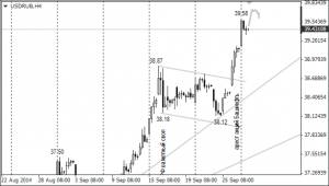Если после восходящего импульса доллар будет консолидироваться в течение 13-20 часов в пределах 15-20 копеек, в среду пойдём к отметке 40 рублей.