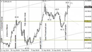 На данный момент скорость падения российской валюты против американского доллара с 24 сентября составляет 2 копейки в час. Это быстрее на 53,8% роста с уровня 36,65 до 38,87. Остановить падение может ЦБ РФ, но он не проводит валютные интервенции с 24 июня. Поскольку спекулянтов никто останавливает, ближайшей целью для них может стать уровень 40 рублей по доллару, и 50,40 по евро.