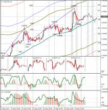 Во время азиатской торговой сессии пара аусси/доллар попыталась пробить и зафиксироваться над МА 50, в области 88-й фигуры. Однако к открытию европейской сессии пара обновила минимумы, продолжив снижение в рамках «медвежьего» тренда. Отметка 0.8700 теперь выступает в качестве психологического уровня сопротивления. Если паре не удастся зафиксироваться выше него, следует ожидать дальнейшего ослабления в среднесрочной перспективе. Локальный уровень поддержки расположен у отметки 0.8660.
