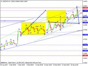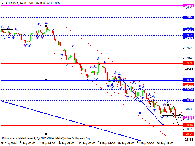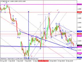 Здесь мы продолжаем следить за нисходящей структурой от 16 сентября. Краткосрочное нисходящее движение возможно в коридоре 0.8663 – 0.8637. Потенциальным значением для низа считаем уровень 0.8587, от этого уровня ожидаем откат кверху. Краткосрочное восходящее движение возможно в коридоре 0.8755 – 0.8783, пробой последнего значения будет располагать к формированию потенциала для восходящего цикла, в данном случае цель – 0.8836. Buy: 0.8785 Take profit: 0.8835 Sell: 0.8663 Take profit: 0.8639 Sell: 0.8635 Take profit: 0.8588
