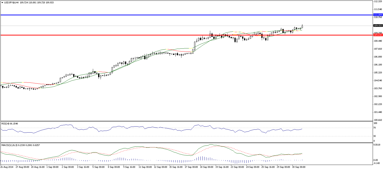 Паре удалось закрепиться выше уровня 109,50, что указывает на возможность дальнейшего роста с пробоем уровня 110,00 и достижения области 110,50 и возможно 111,00. Пределом риска для данного сценария является область поддержки 109,00.
