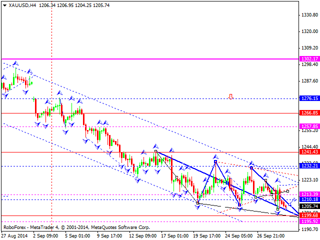 Золото не смогло развить волну роста. На сегодня рассматриваем развитие нового консолидационного диапазона. Для начала - рост к 1210. Далее - снижение на обновление 1200. Затем рассмотрим возможность пробоя диапазона вверх. Расширение диапазона на 1220 может привести к формированию разворотной фигуры с развитием коррекции. Возможная альтернатива - пробой вниз, который может привести на перекрытие уровня 1190.
